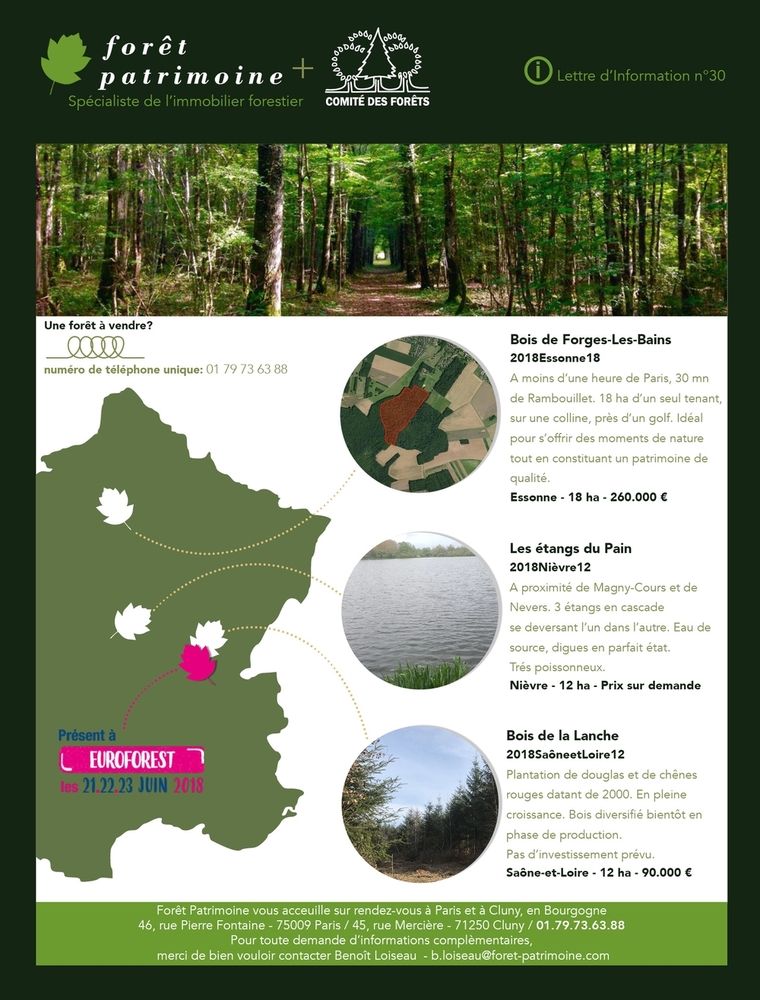 Nouvelles offres de forêts en Saône-et-Loire, Nièvre et Essonne