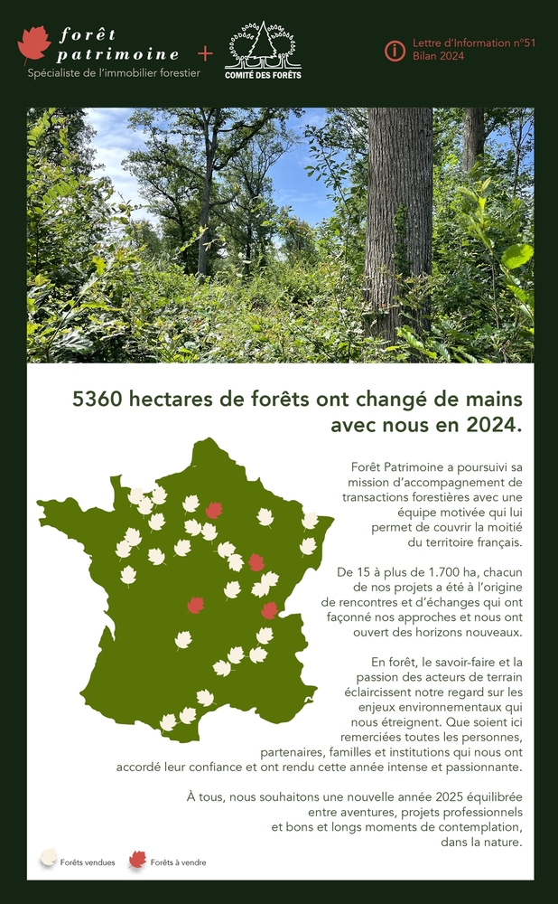5360 hectares de forêts ont changé de mains avec nous en 2024.