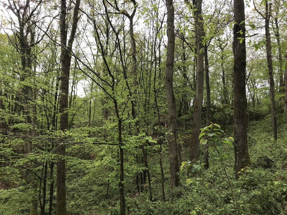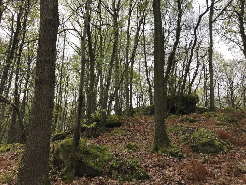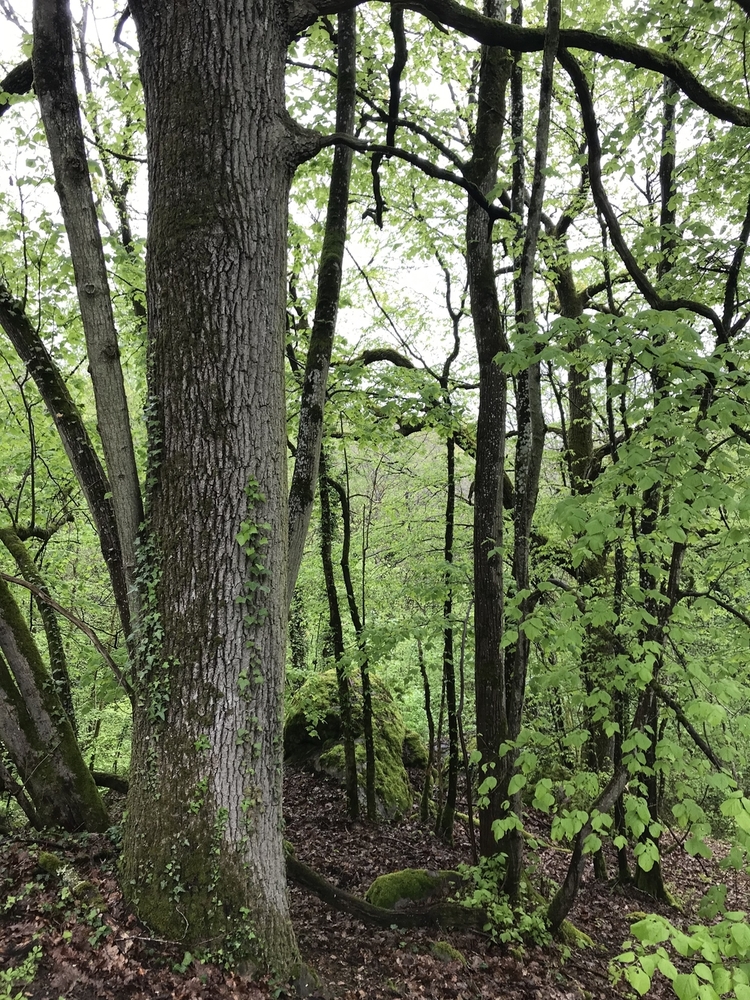 Sur les zones de chaos, la vigueur diminue fortement. Charme et tilleul restent présents localement dans les pentes. Les hauts de pentes et le plateau ne sont plus peuplés que par des chênes.