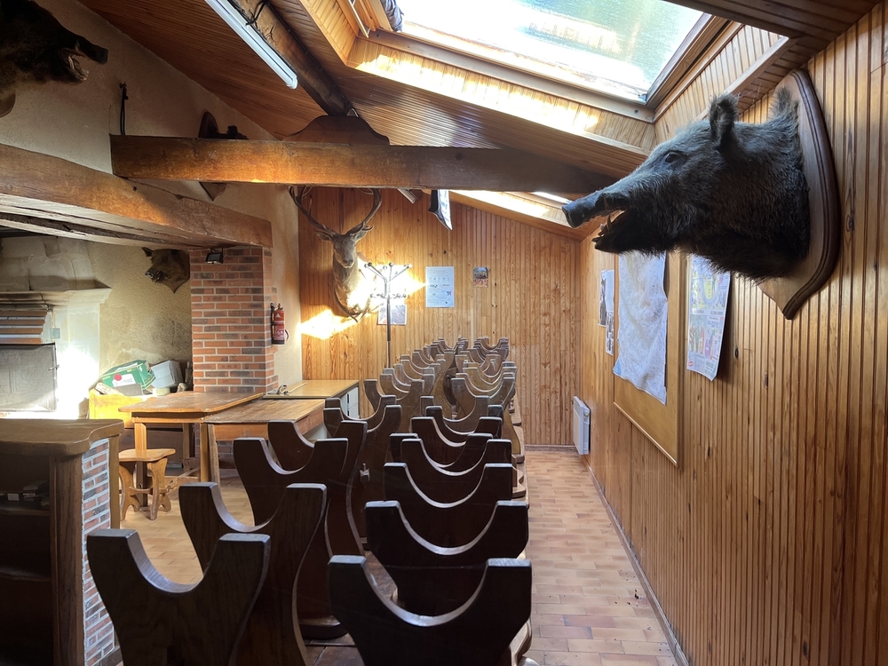 - Au rez-de-chaussée, une grande pièce de 65 m2 environ accueille les repas de chasse