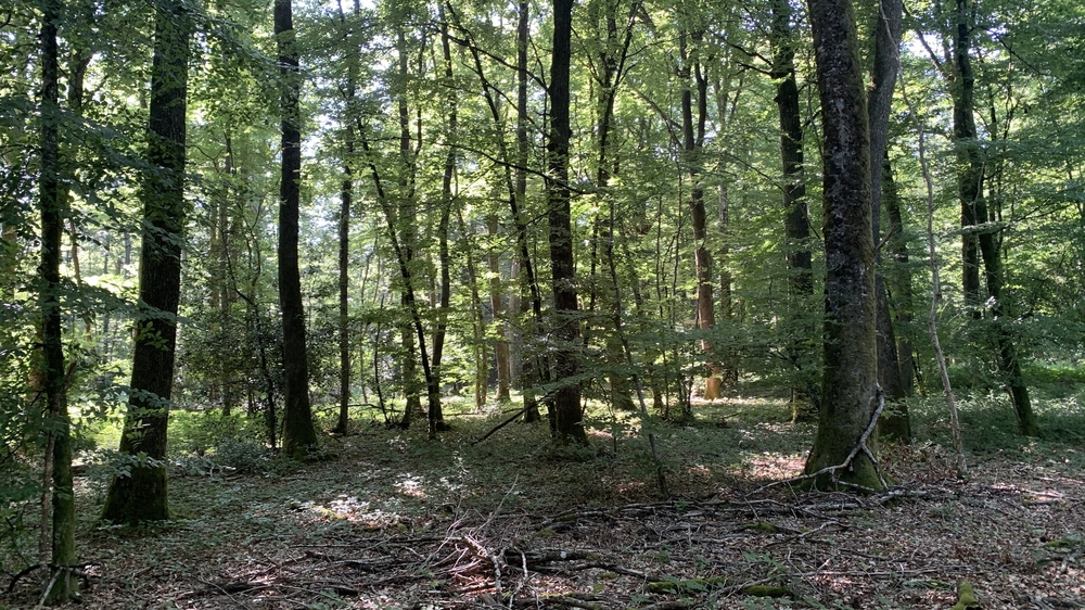 Beech is present sporadically, in coppice, and mixed with oak in high forest. The young stems are dynamic and well-formed.