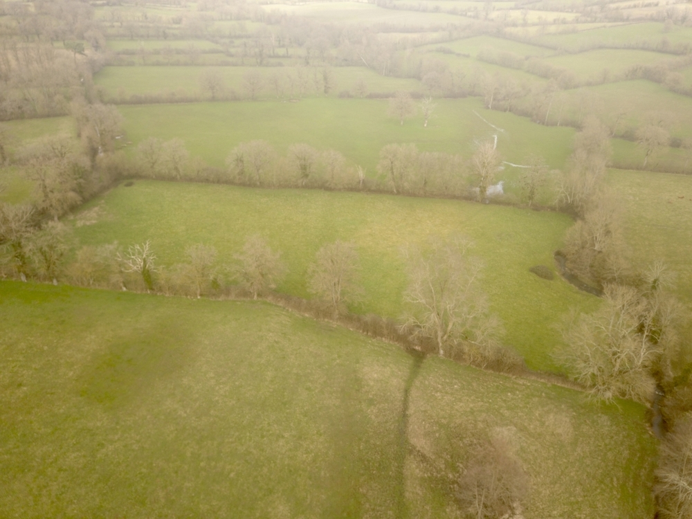 Block 2: Bordered to the east by the stream, this block is permanent pasture. Its relatively large size and shape are favorable, though a few scattered trees are obstacles for haymaking. The lower part near the river appears wetter, with some temporarily waterlogged areas.